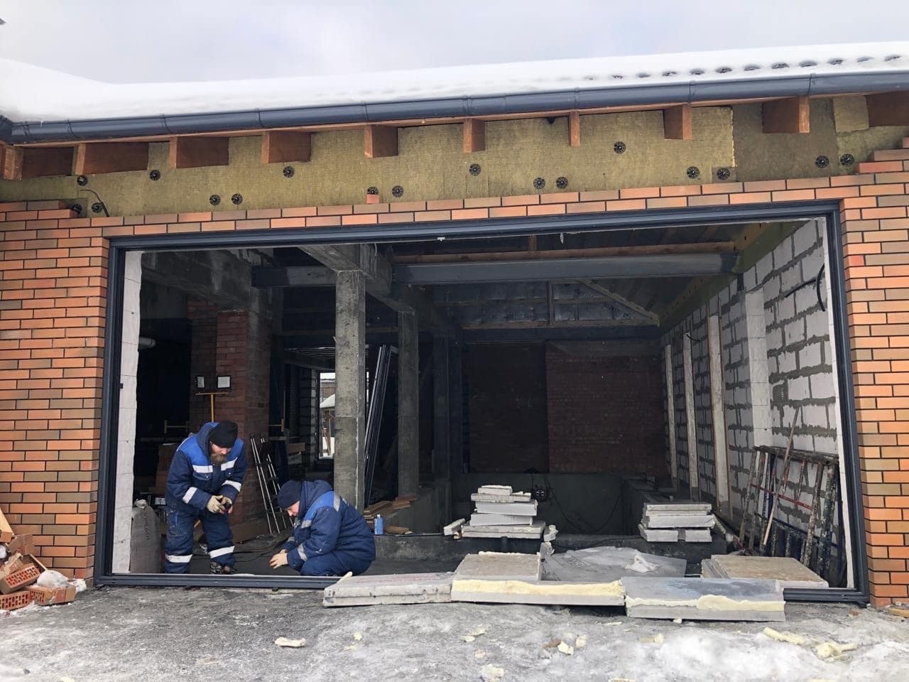 Главная цель клиента была закрыть данный проем открывающейся конструкцией, состоящей только из двух частей, не больше. С этим пришли на помощь мы, изготовив и установив этот огромный портал.